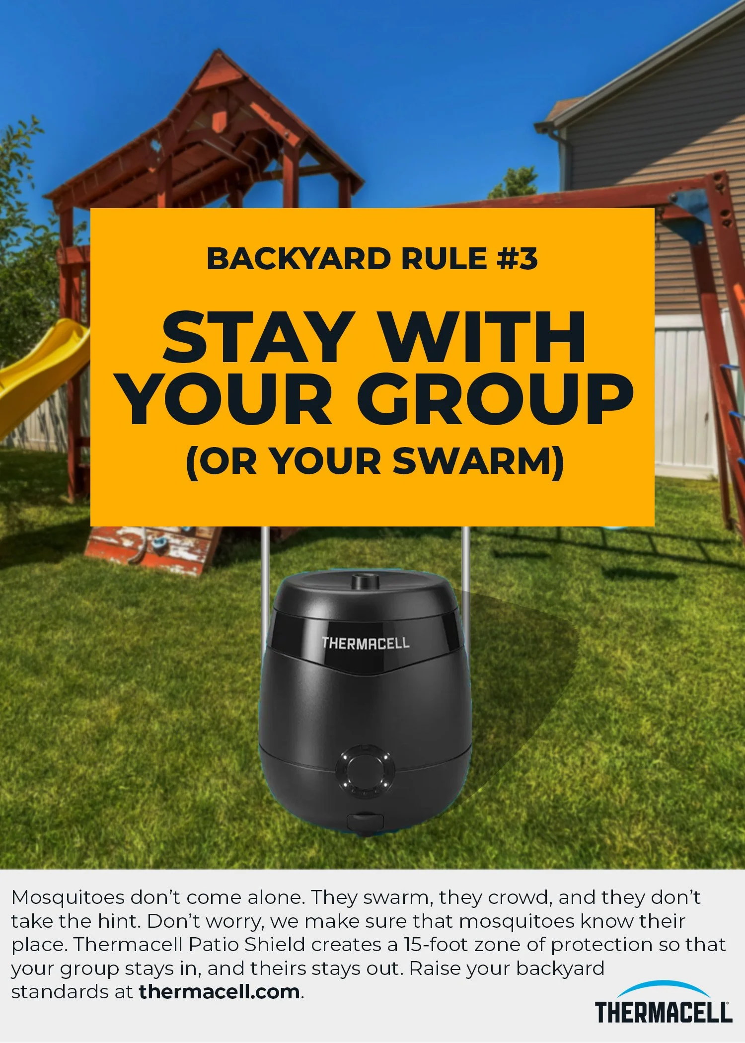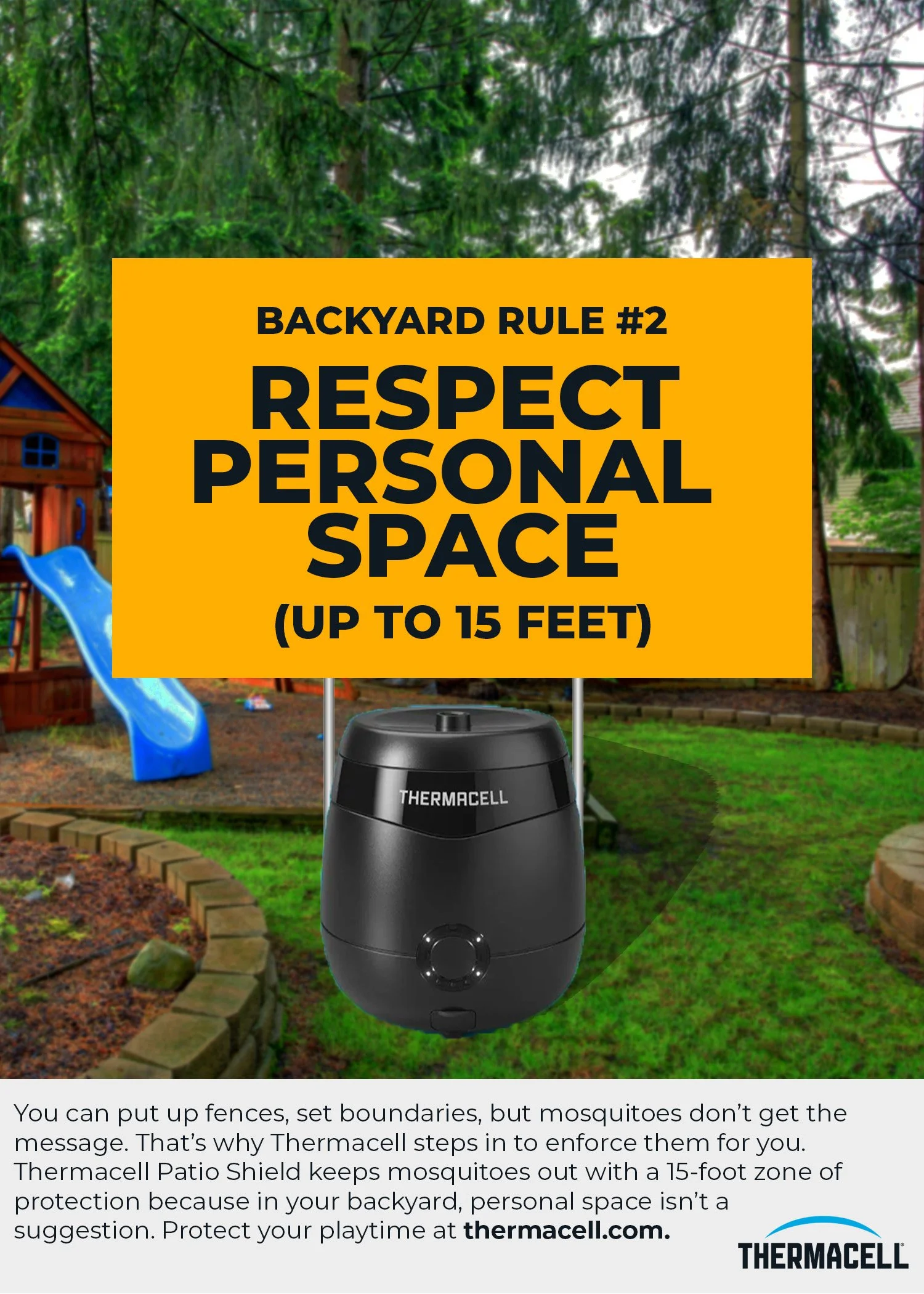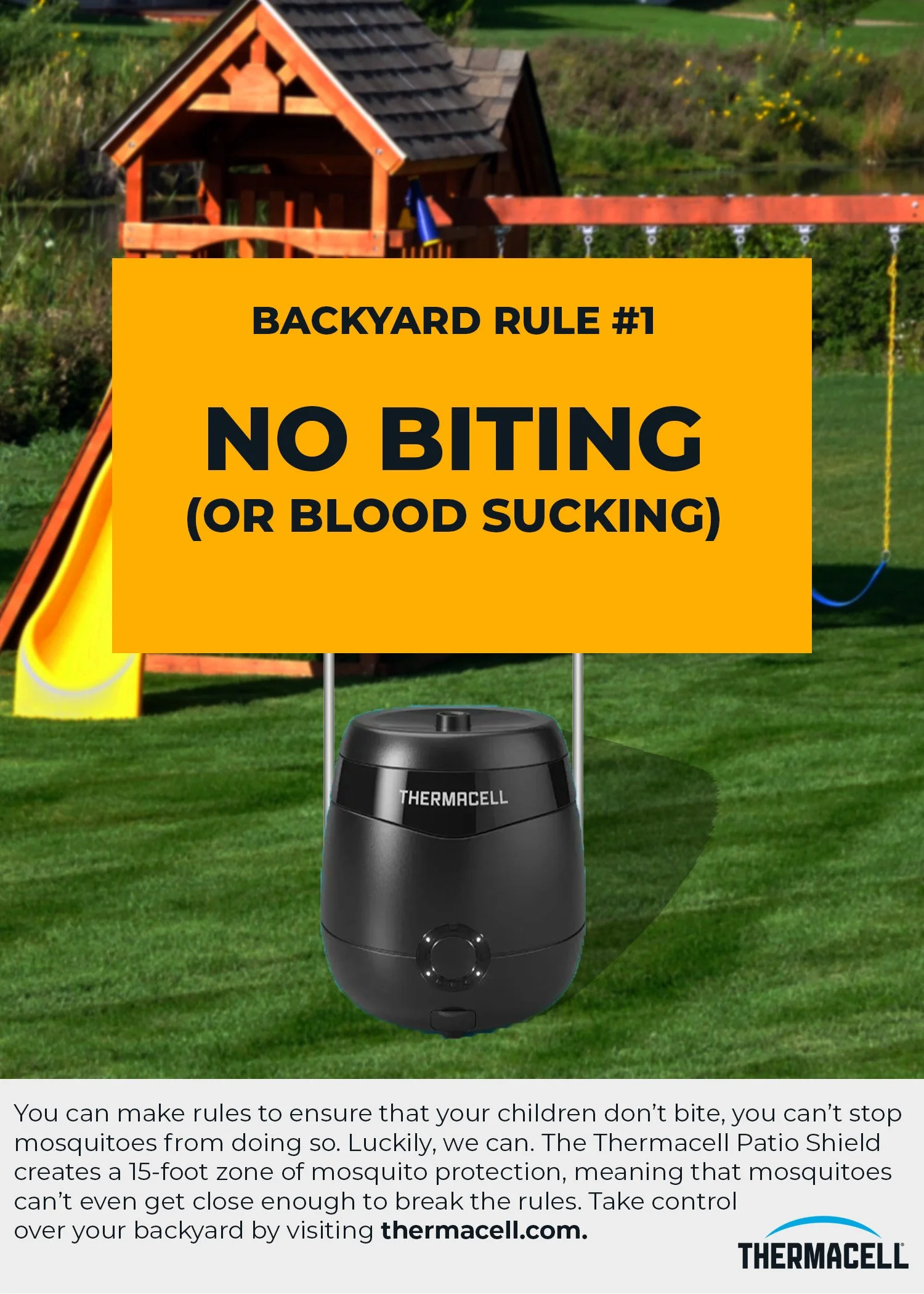 Thermacell creates portable mosquito repellents that protect users up to 15ft. This campaign is built for young families who don’t want bug spray interrupting the already short amount of time they get to spend with their kids. It reframes familiar playground rules in a humorous way, showing how mosquitoes constantly break them. Positioning Thermacell as the thing that make the rules stick the brand becomes more about getting outside than it is about bug repellent.